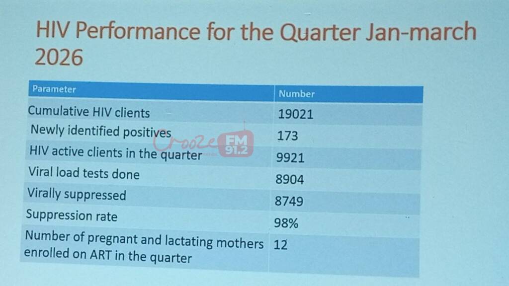 Between January and March 2026, the district recorded 173 new HIV cases, with 75 infections among women aged 20–39. District Health Educator Alfred Besigensi said 17,462 people were tested, yielding a 1% positivity rate.