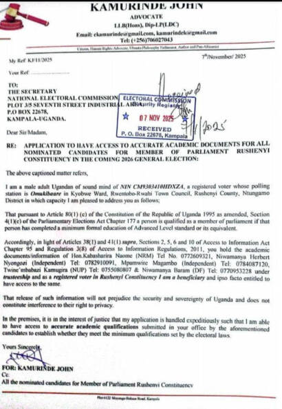 News, PoliticsNovember 17, 2025Advocate Challenges Rushenyi MP Candidates’ Academic QualificationsRead more